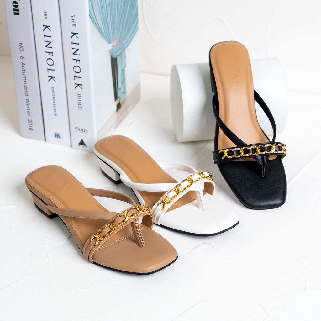 Pluvia HILDA Sandal Heels Wanita Hak Tahu 3 Cm Akesoris Rantai