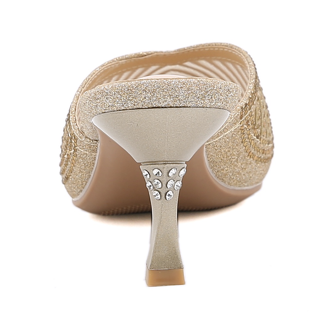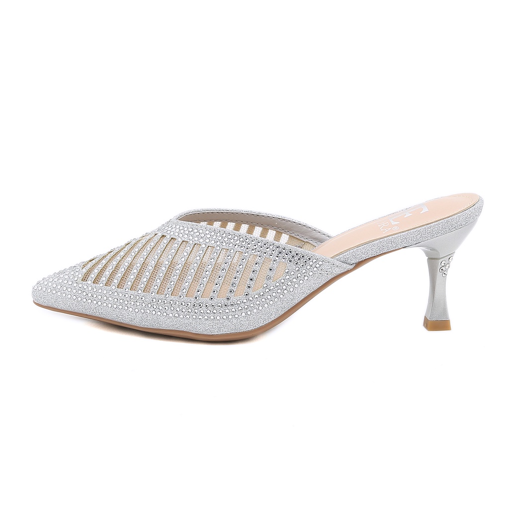 sepatu heels pesta brukat wanita model permata rantai oriana 5cm tahu kaca by purple shoes