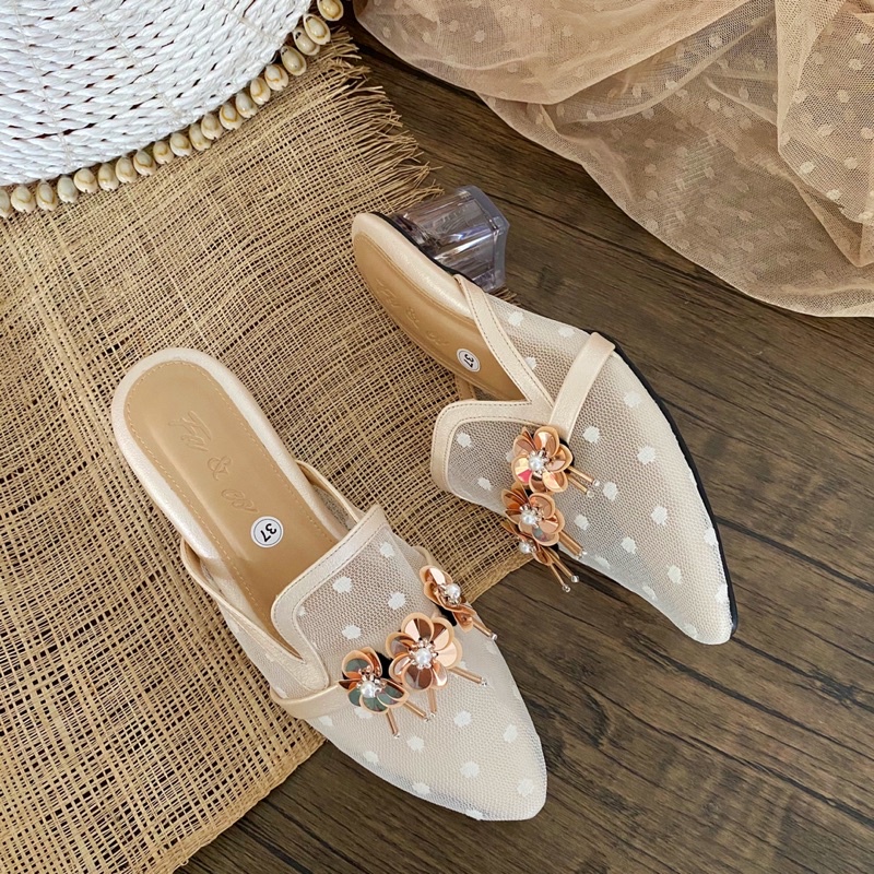 Alasan kenapa harus beli FAANDCO- HEELS KACA 5CM JALA PAYET BUNGA sekarang