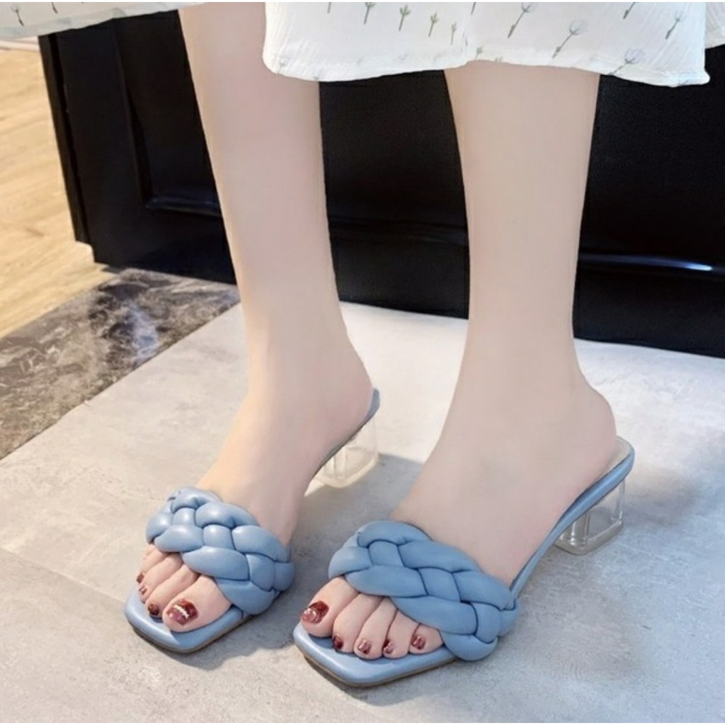 Sandal Heels Wanita Kaca Ban 1 Kepang R 81