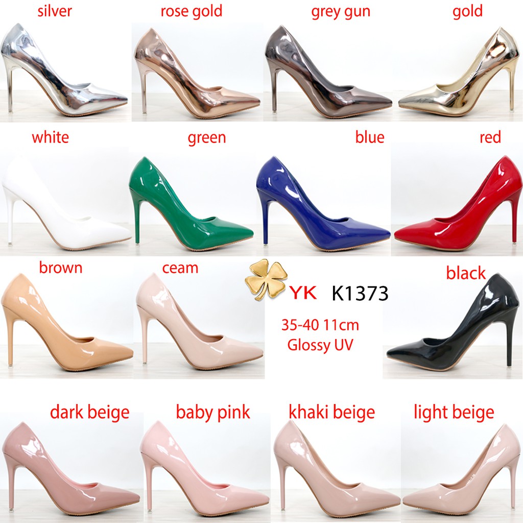 Alasan kenapa harus beli YKshoes 1373 pump 11cm pantofel ketutup heels white beige nude khaki cream coklat brown glossy impor sekarang