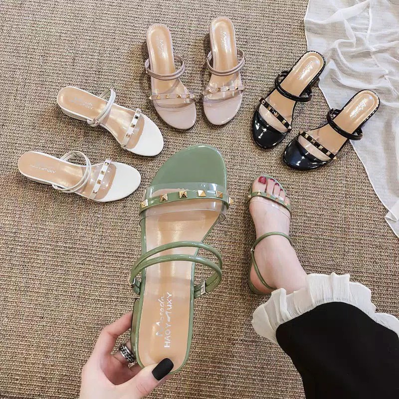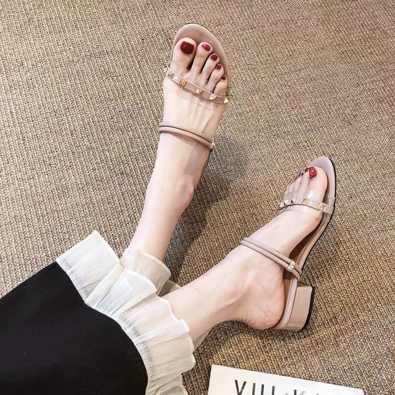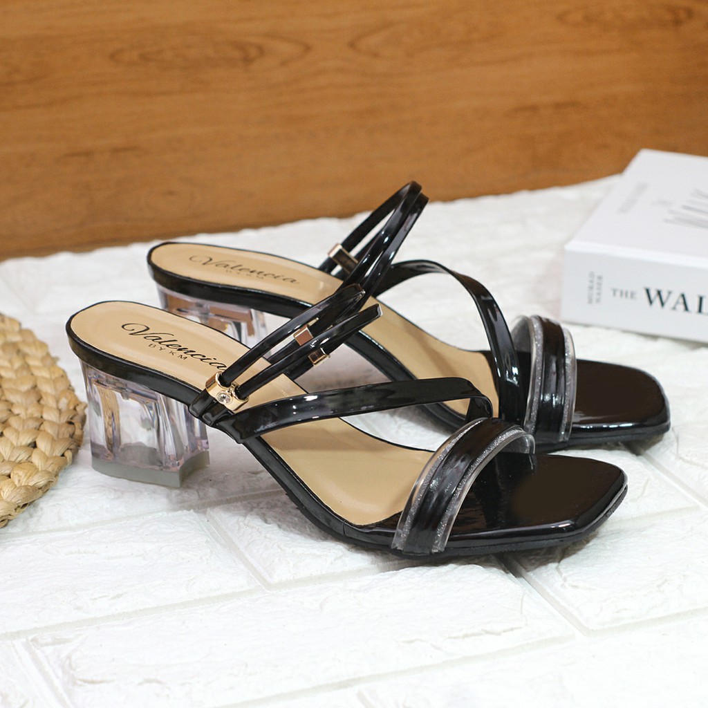 Sandal Wanita Heels Kaca Strap Tali Belakang HK 08