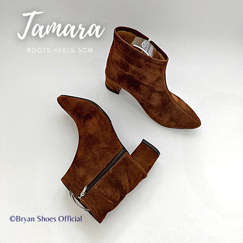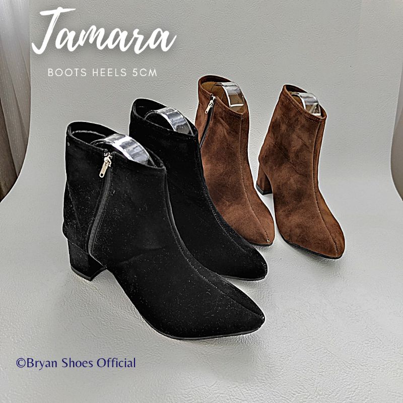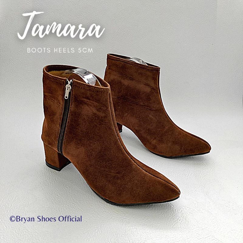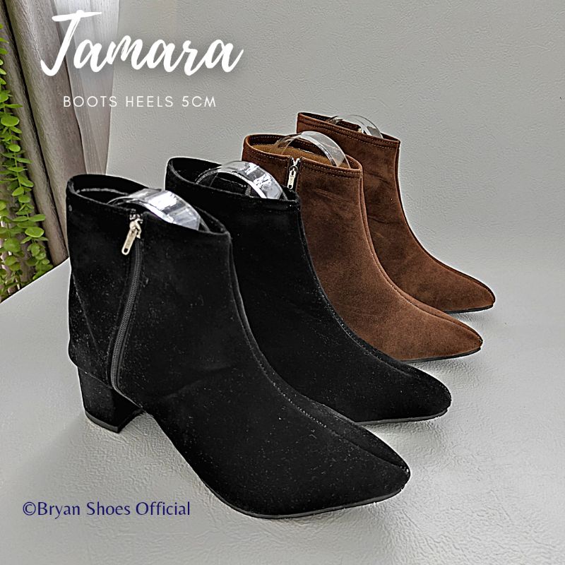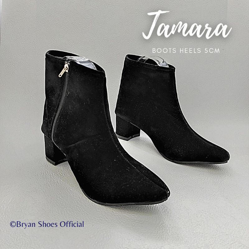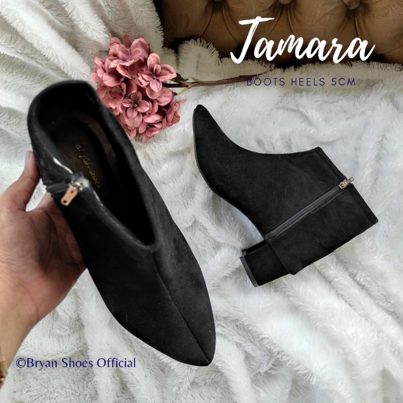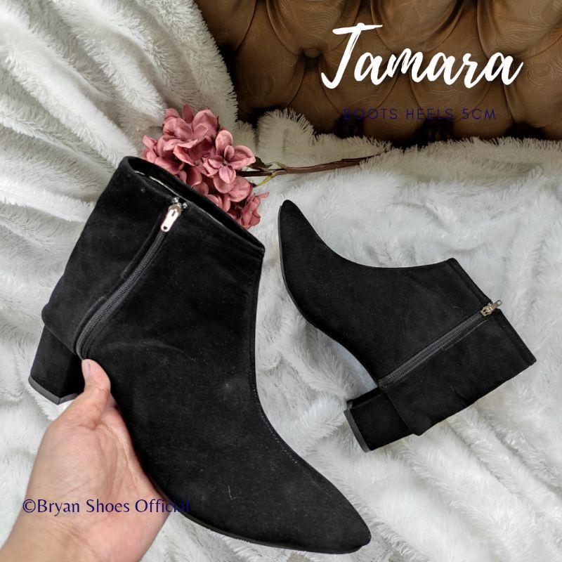 Harga Bryan Tamara Boots Heels Suede Cutting Tinggi Hak Tahu 5cm Zipper 36-40 41-43 Jumbo Bigsize Oversize