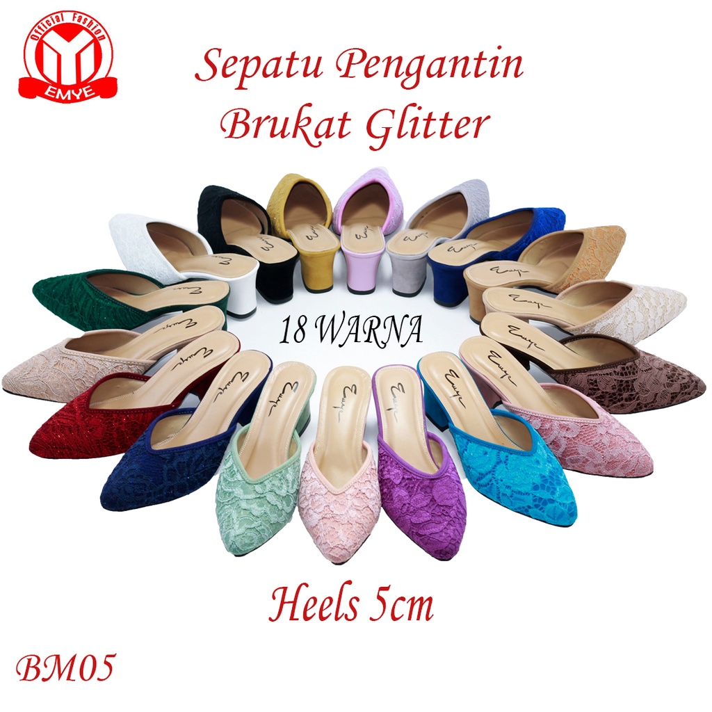 Harga Emye BM05- Sepatu Sandal Pesta Wedding Shoes Pengantin Heels 5cm Wanita Terbaru Murah Mewah Kekinian 2021 Selop Brokat Kondangan Pernikahan Wanita