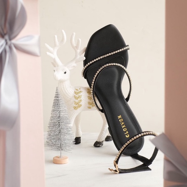YKshoes 1598 strappy heels 15cm shoes import black cream sepatu hak tali tinggi stiletto glossy