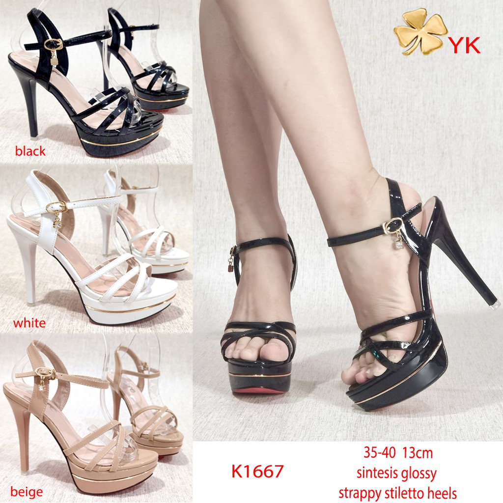 YKshoes 1667 heels 13cm strappy heels black white beige shoes import sepatu hak tali import glossy