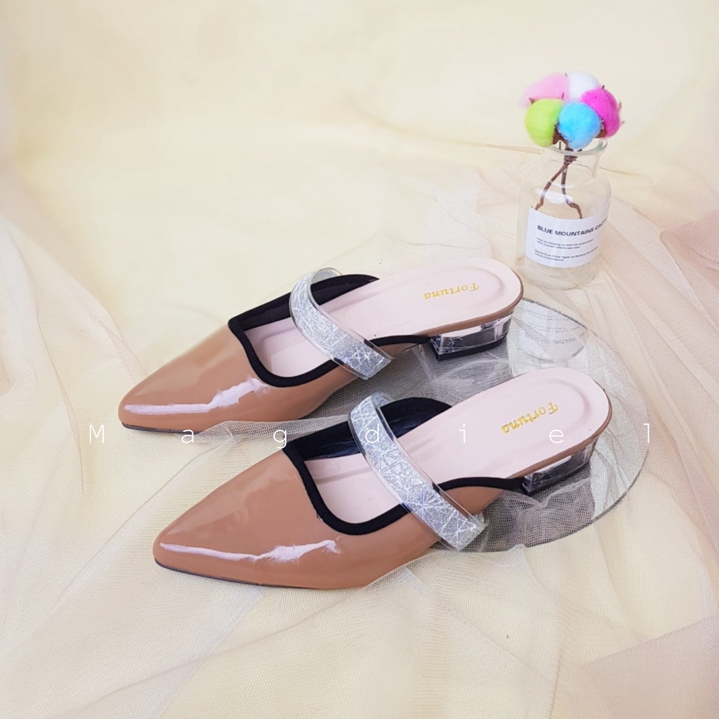 Harga Magdiel - Mules Heels Kaca | Hak kaca Sheeny 3CM