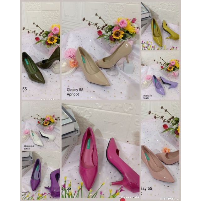 sepatu maude guesis soll karet tapak anti licin Glosy 55 heels 5cm ini