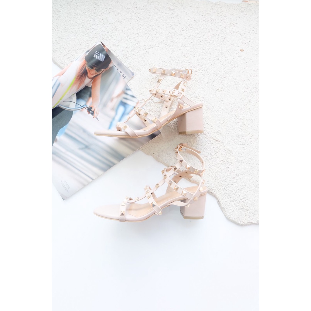 nicholas edison heel viensa beige sandal wanita hak tahu tali kait best seller terbaru peep toe