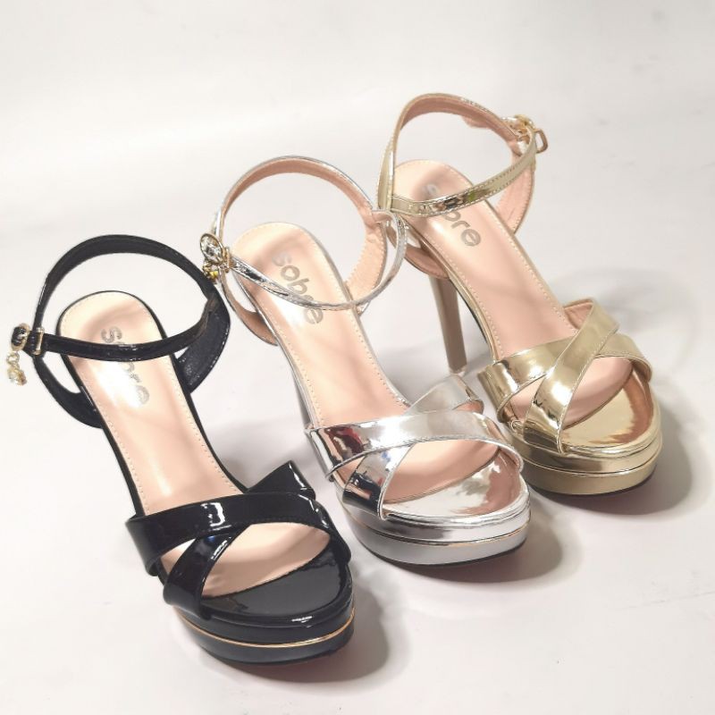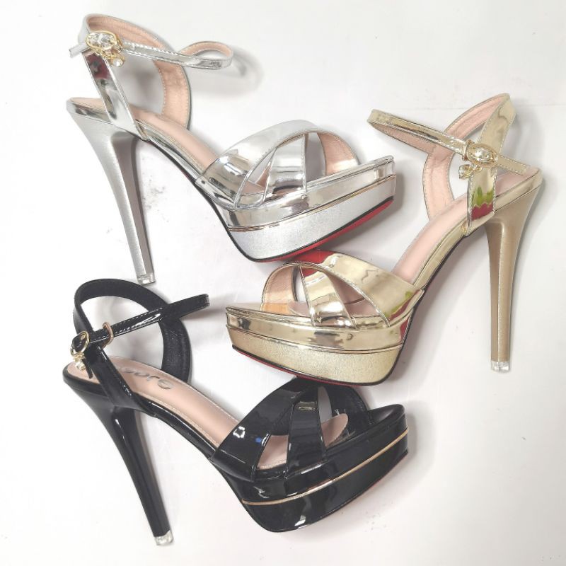 Harga YKshoes 1636 heels 13cm strappy sepatu hak tali silang black silver gold sintesis glossy PU import
