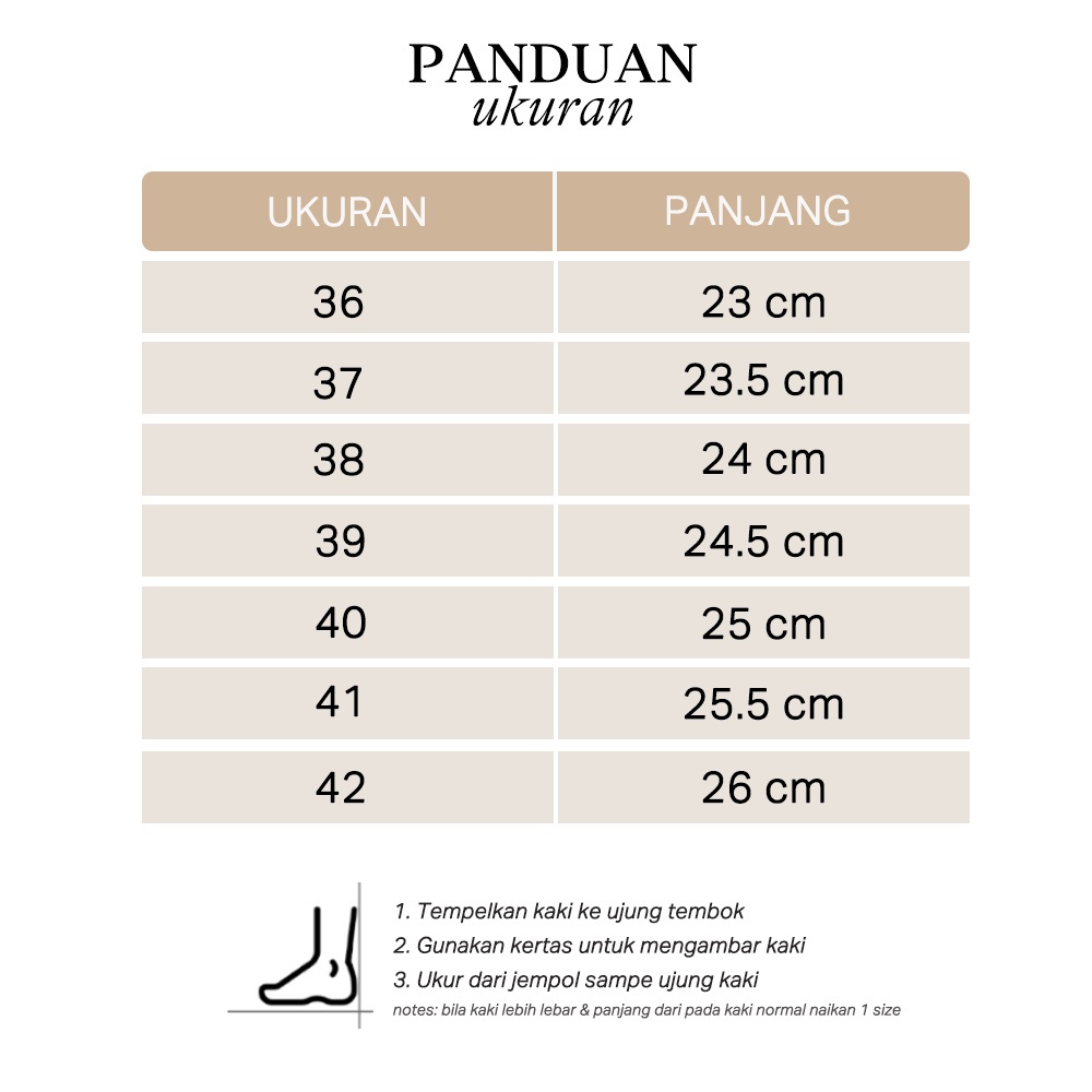 Produk ini memiliki 8 Variasi Size yaitu : 36,37,38,39,40,41,42,43,