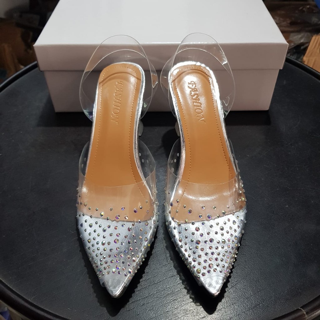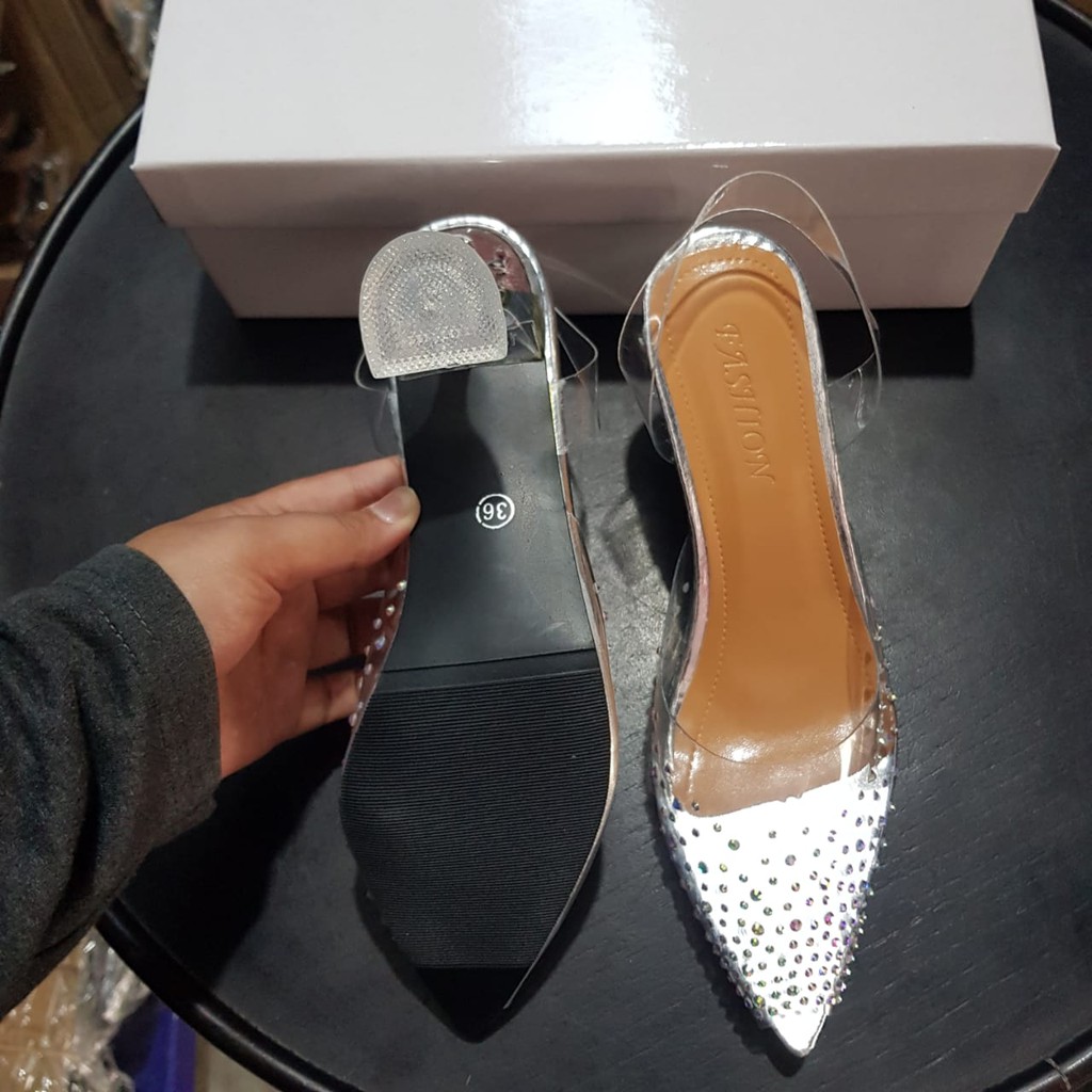 Harga 0206 Heels Peri Wanita Heels Runcing Transparan Heels Pesta Kaca