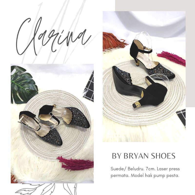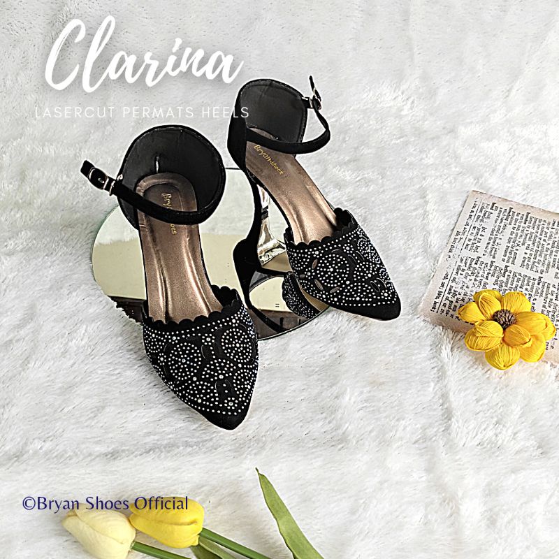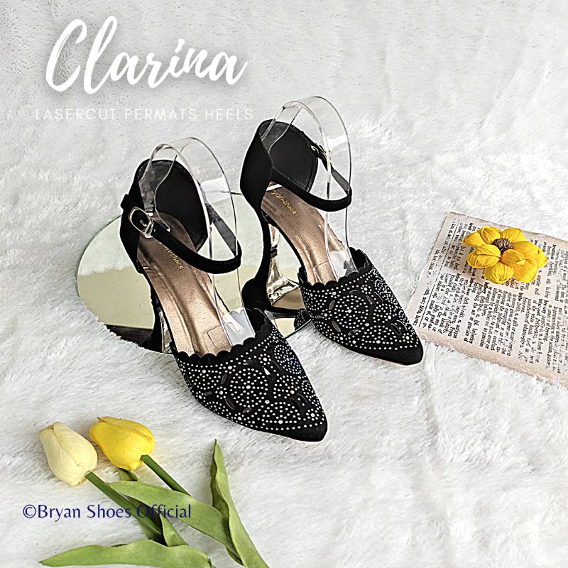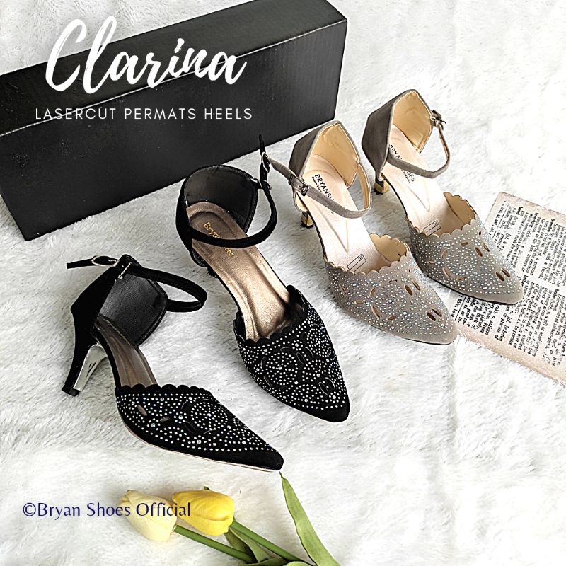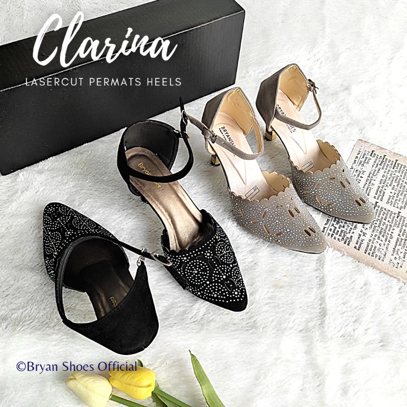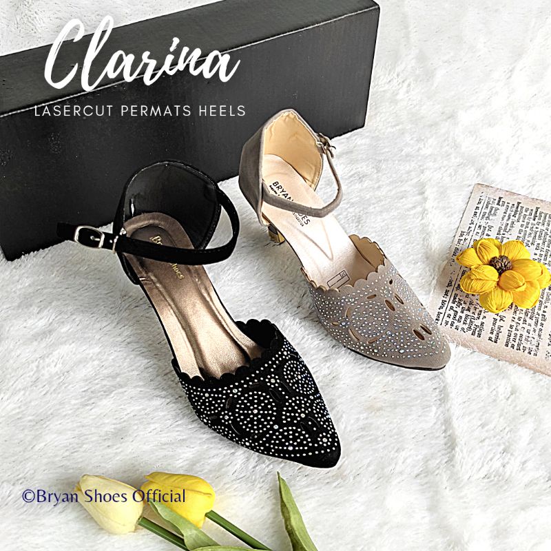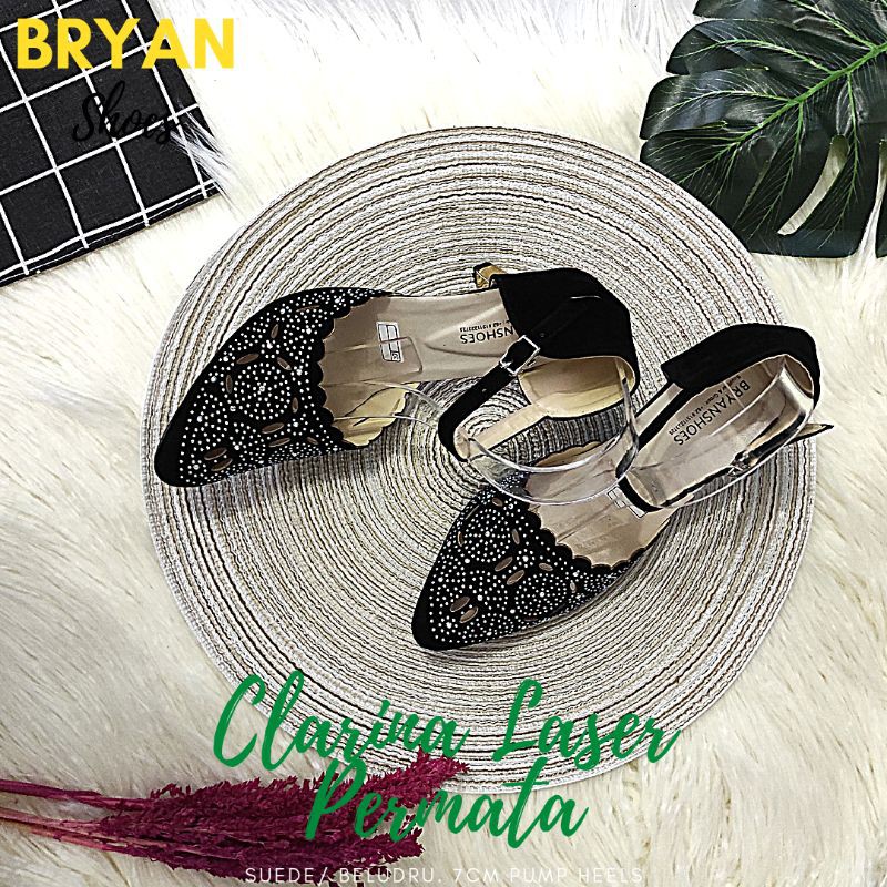 Harga Bryan Clarina Heels Pesta Lasercut Permata Abu Hitam Hak Runcing Laser Mote 7cm Suede Beludru Weding