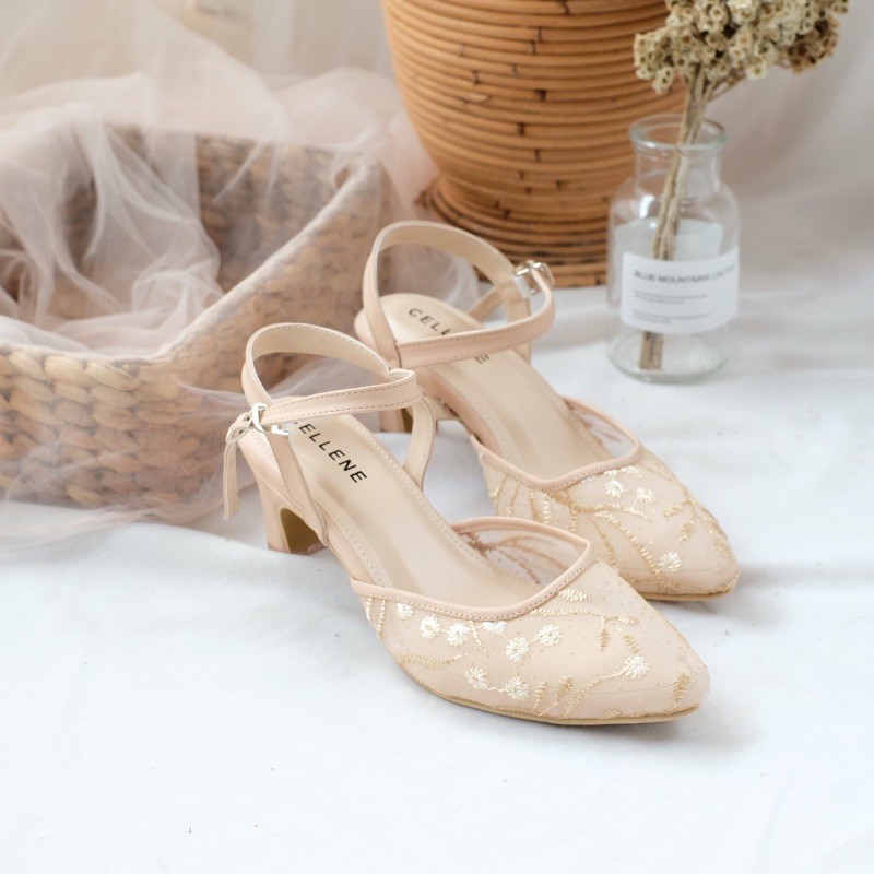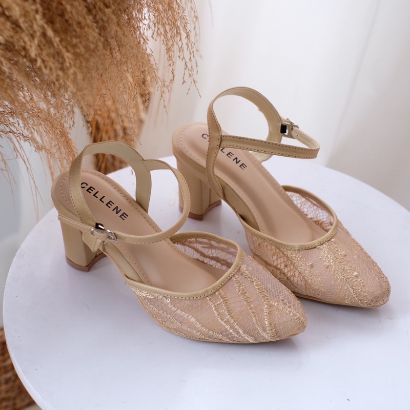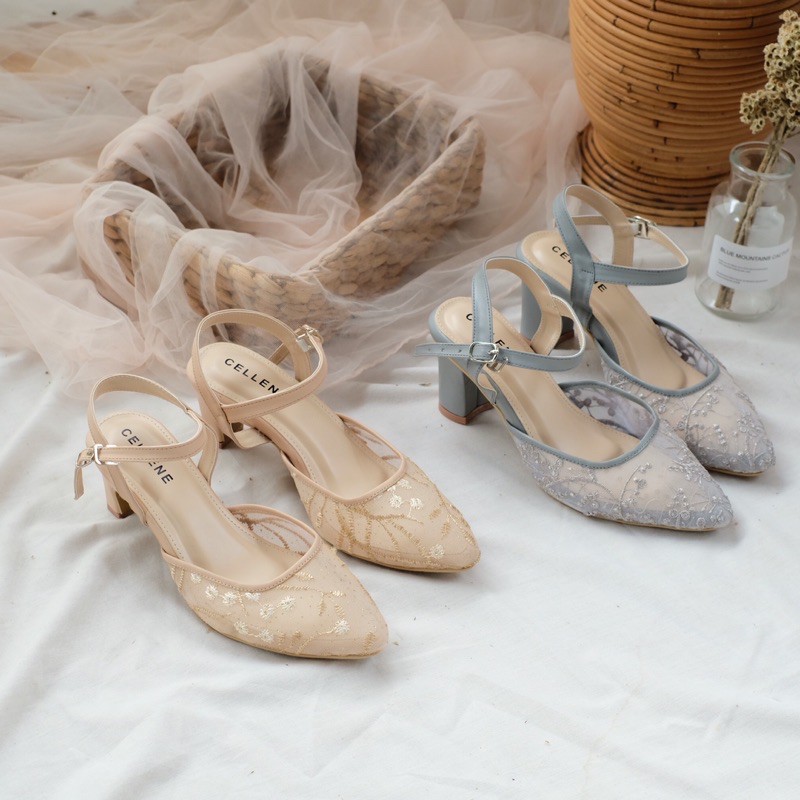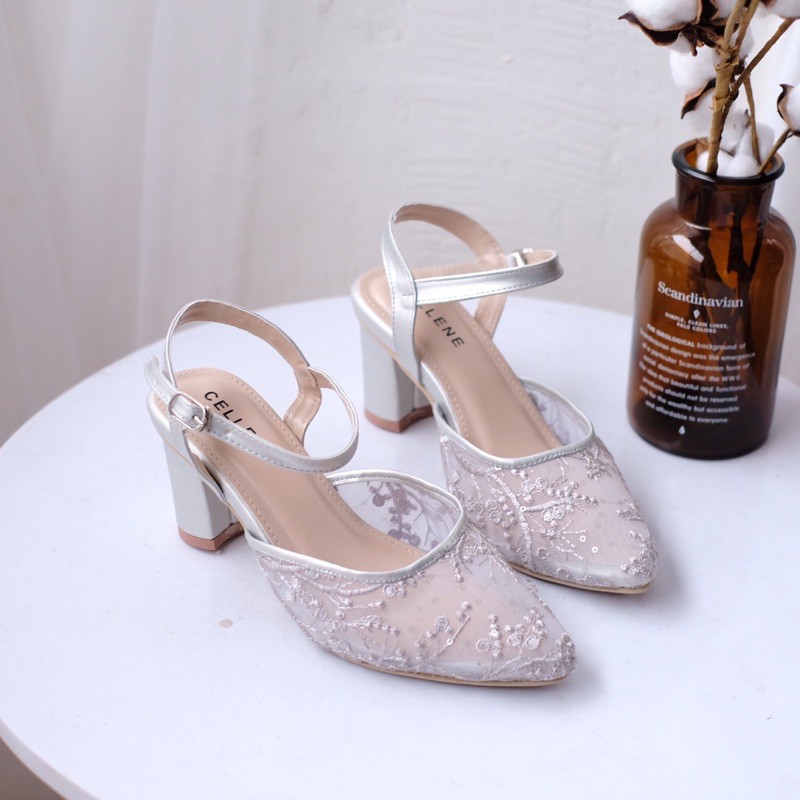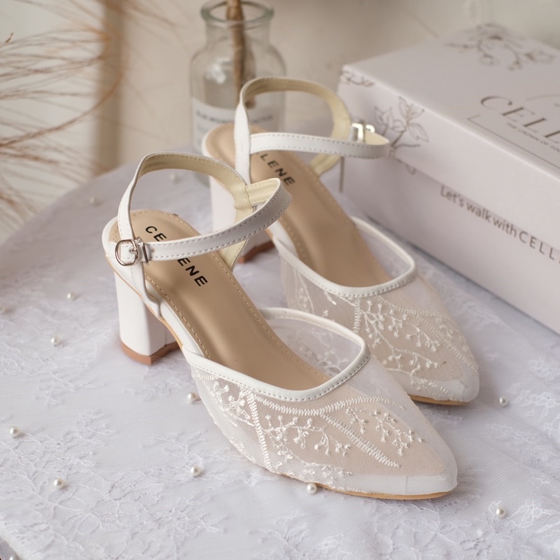Harga CELLENE MAURA Lace Heels / brukat heels wanita 7cm wedding shoes