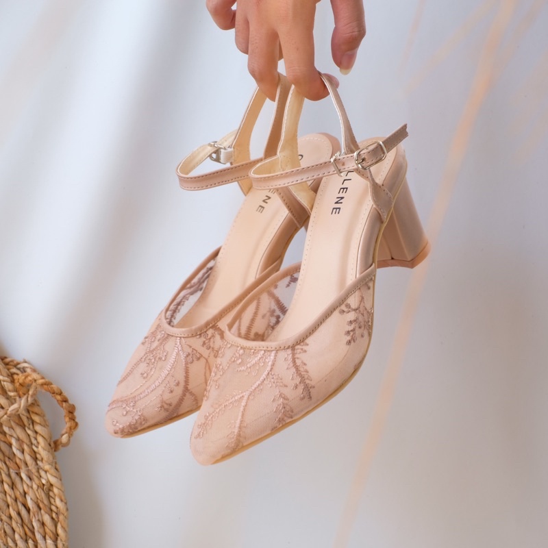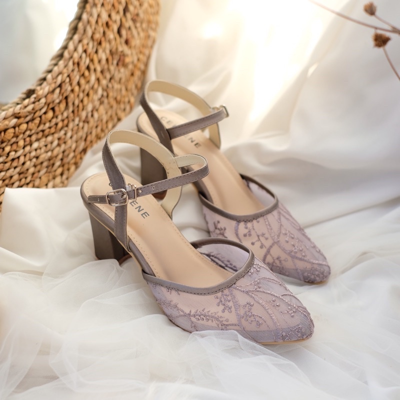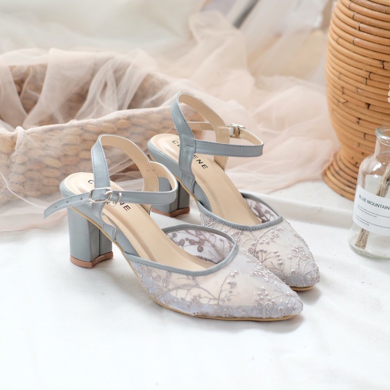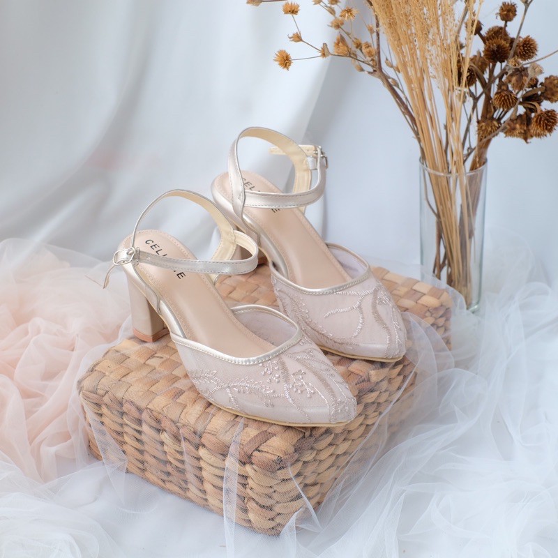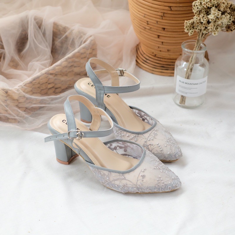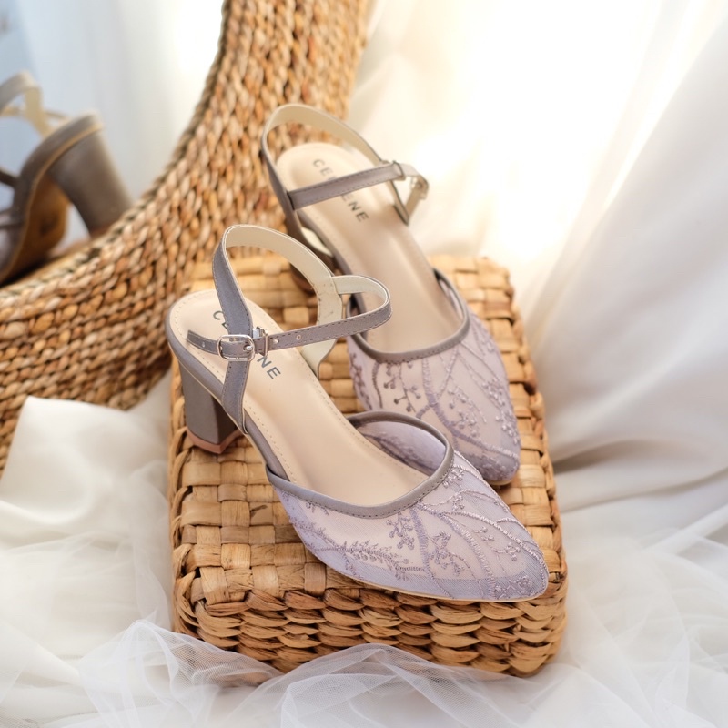 Harga CELLENE MAURA Lace Heels / brukat heels wanita 7cm wedding shoes