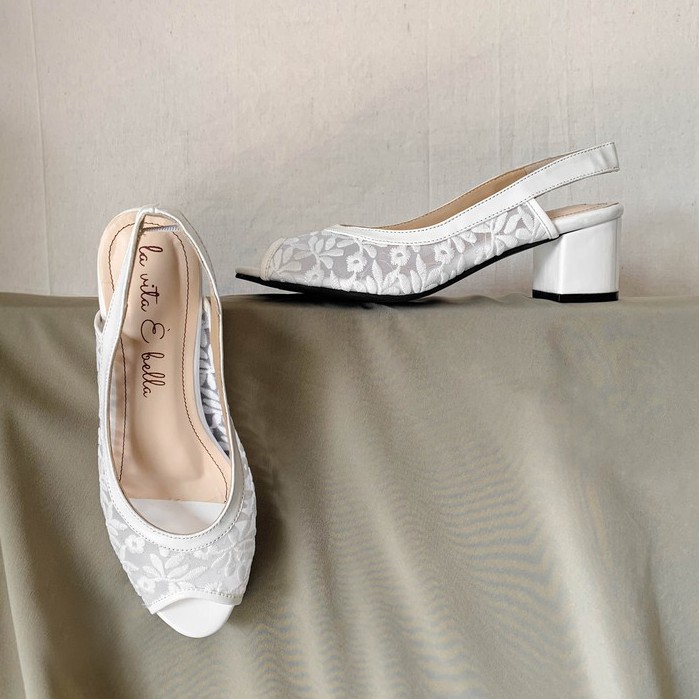 La Vita E Bella Floral Sepatu Sandal Heels Wanita Model Slingback [LV 7502] - White